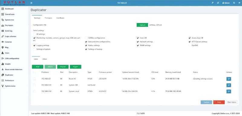 The Duplicator program is a management tool specifically designed for handling the configuration and firmware updates of multiple Vutlan monitoring devices.
