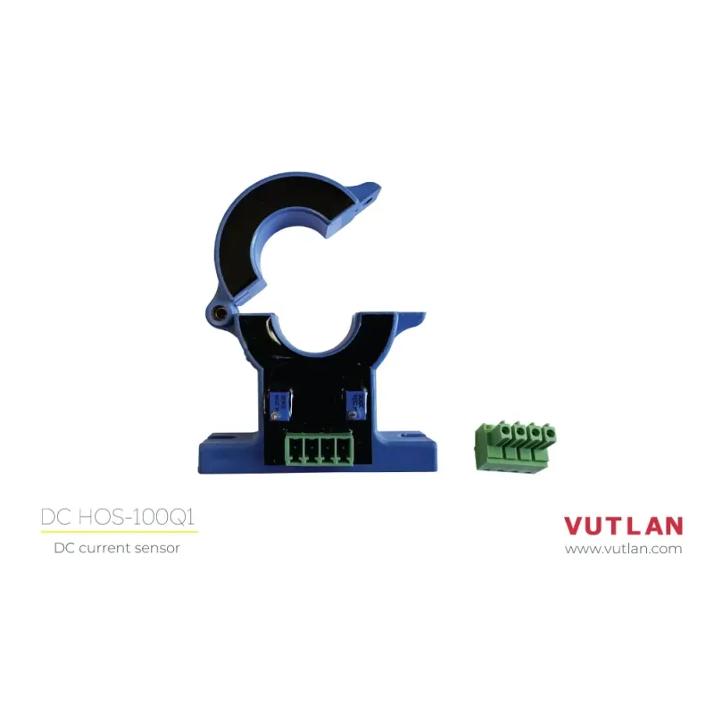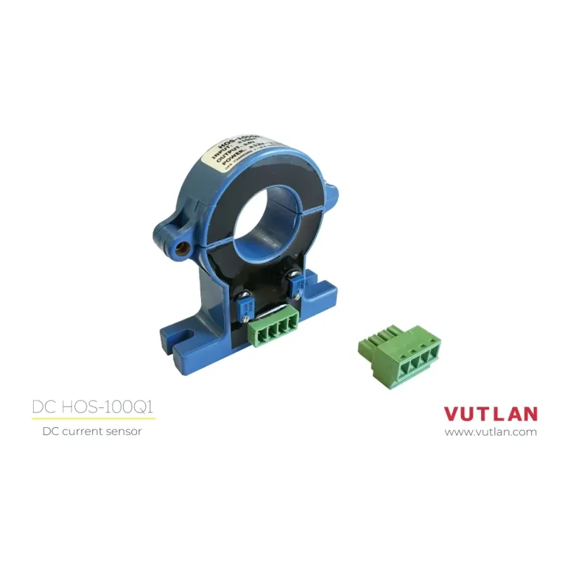 The HOS-100Q1 is a simple open-loop DC ammeter capable of measuring DC currents in the range of ±100A. It connects to the monitoring system via the VT406 transceiver.