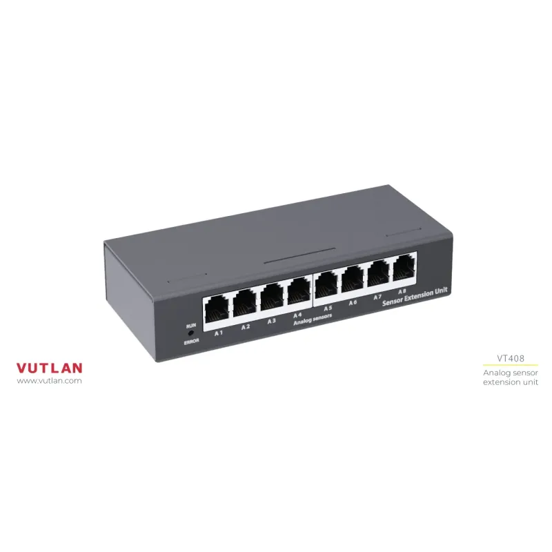 The VT408 expansion module increases the number of analog sensors that can be connected to any Vutlan monitoring device.